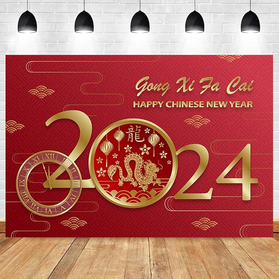 Bovlleetd 2024 Chinese New Year Background Red Golden Dragon Happy