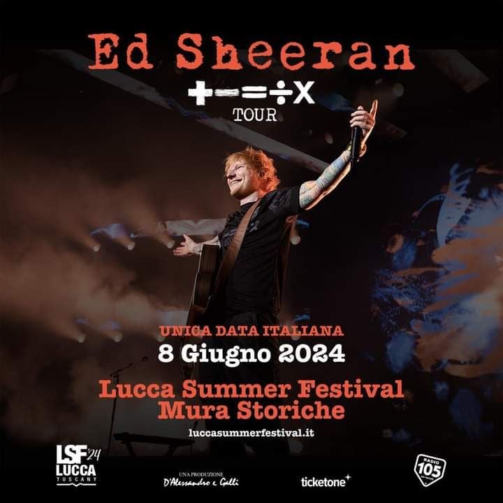 Ed Sheeran live a Lucca 8 giugno 2024, Piazza Napoleone, Lucca