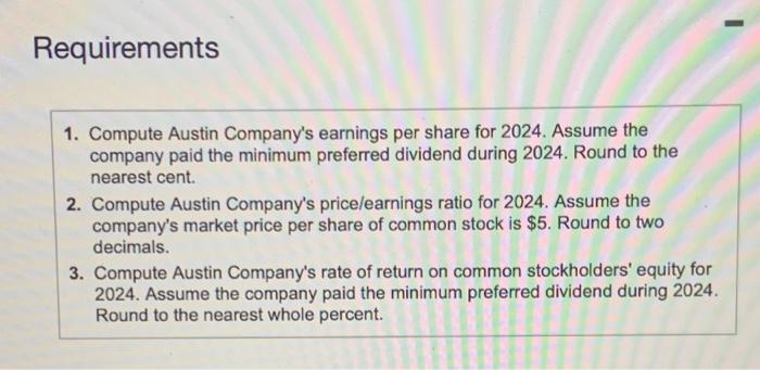 Solved Austin Company reported these figures for 2024 and | Chegg.com